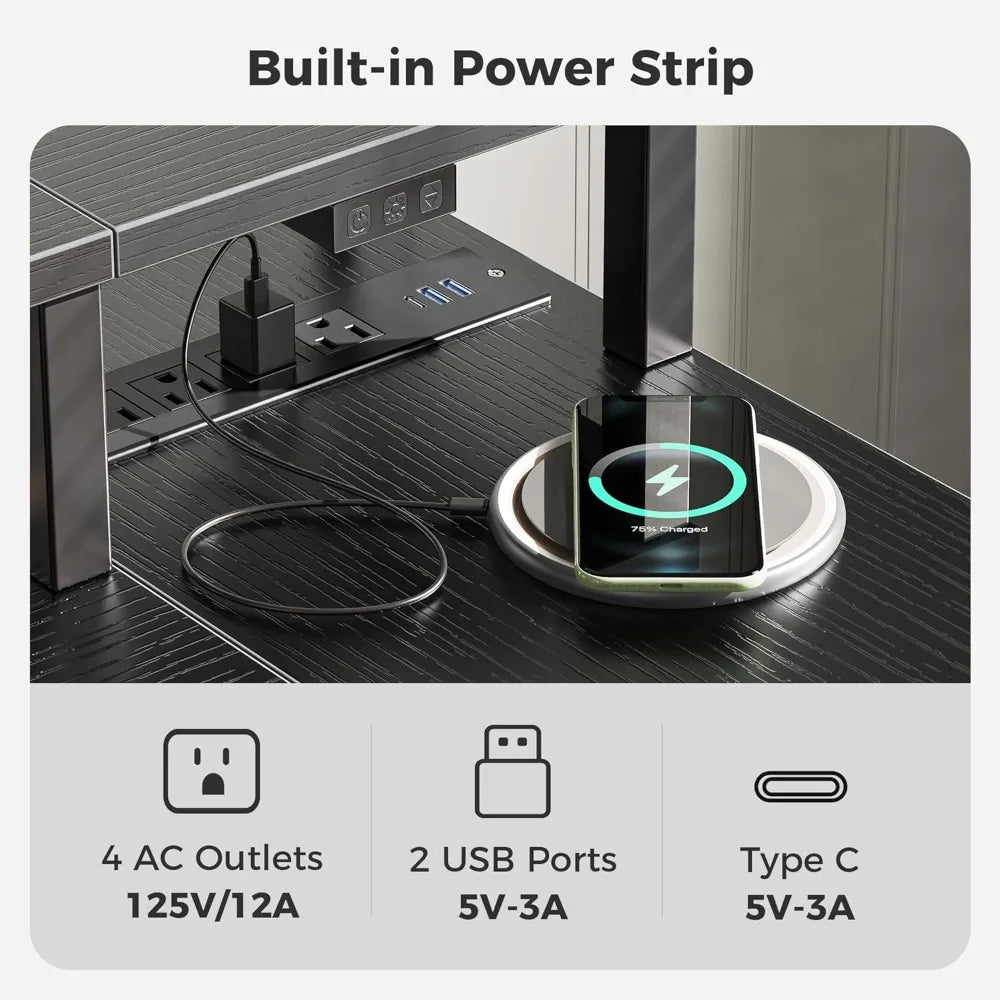 - Convenient Power Options: Equipped with 4 standard plug outlets, 2 USB ports, and 1 Type-C port, this desk makes charging your devices a breeze.