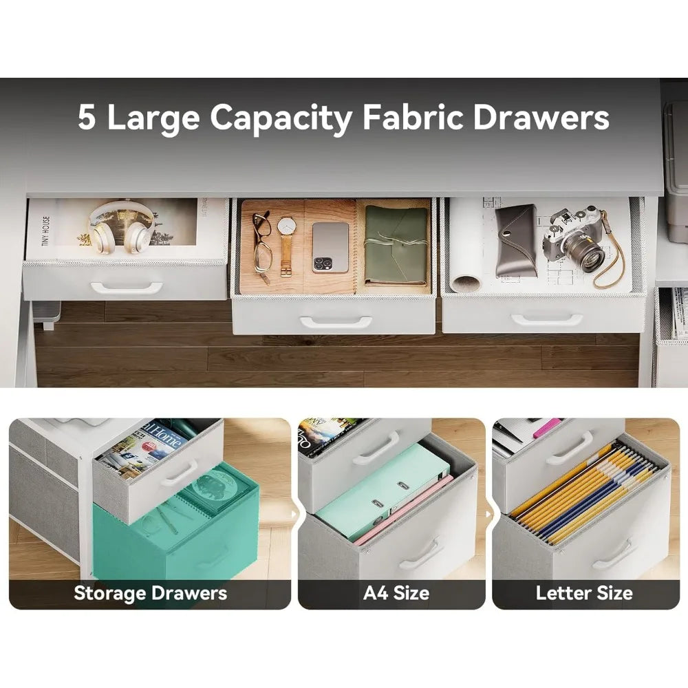 - Ample Storage: Includes 5 fabric drawers and 4 tier open shelves to keep your essentials organized and within reach.