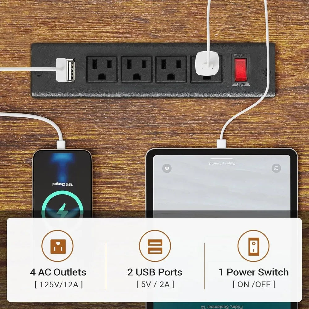 - Built-In Charging Station: Includes 4 outlets and 2 USB ports, allowing you to charge up to 6 devices simultaneously—perfect for tech enthusiasts.