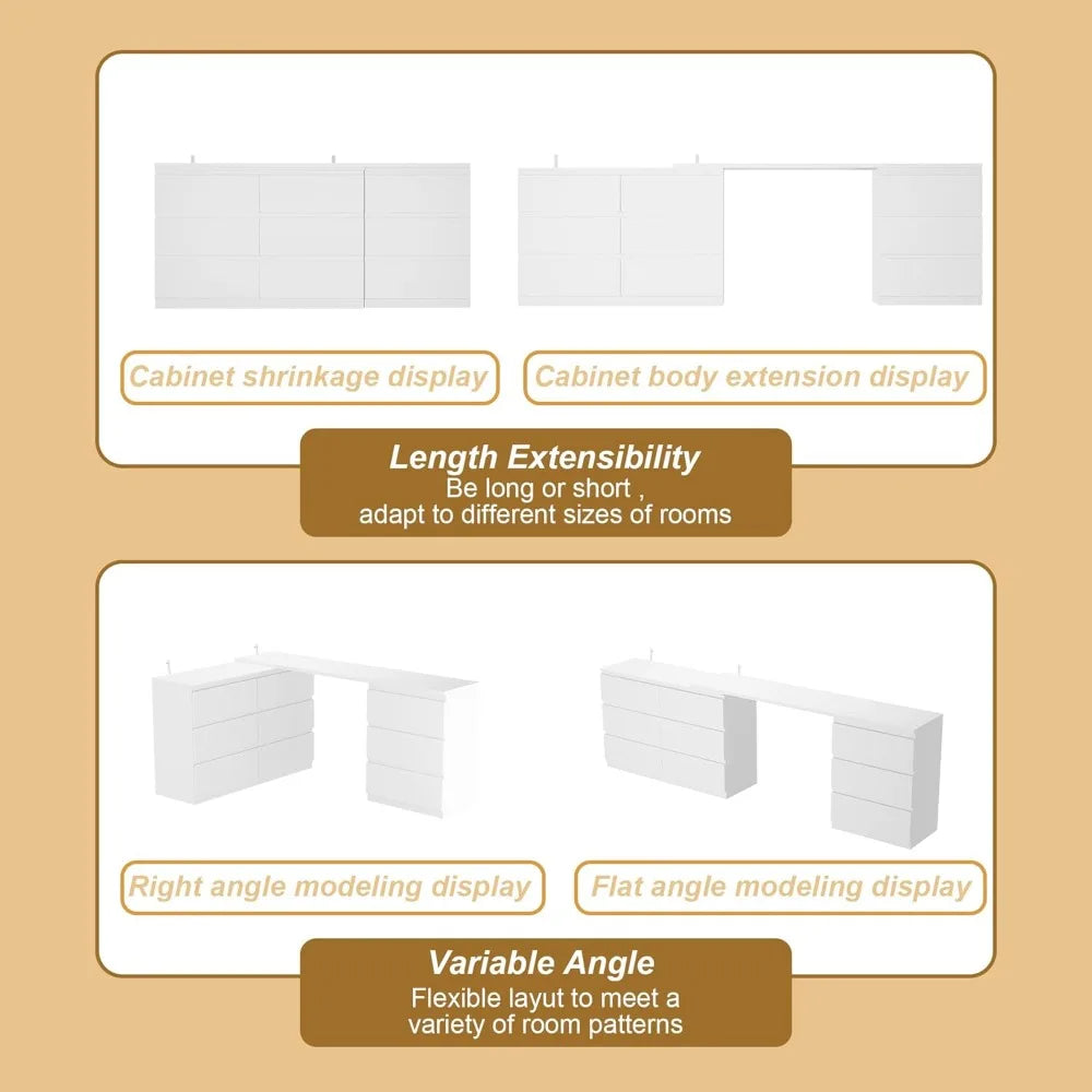 L-Shape Dressing Table with 9 Drawers Extendable Vanity Desk Dresser