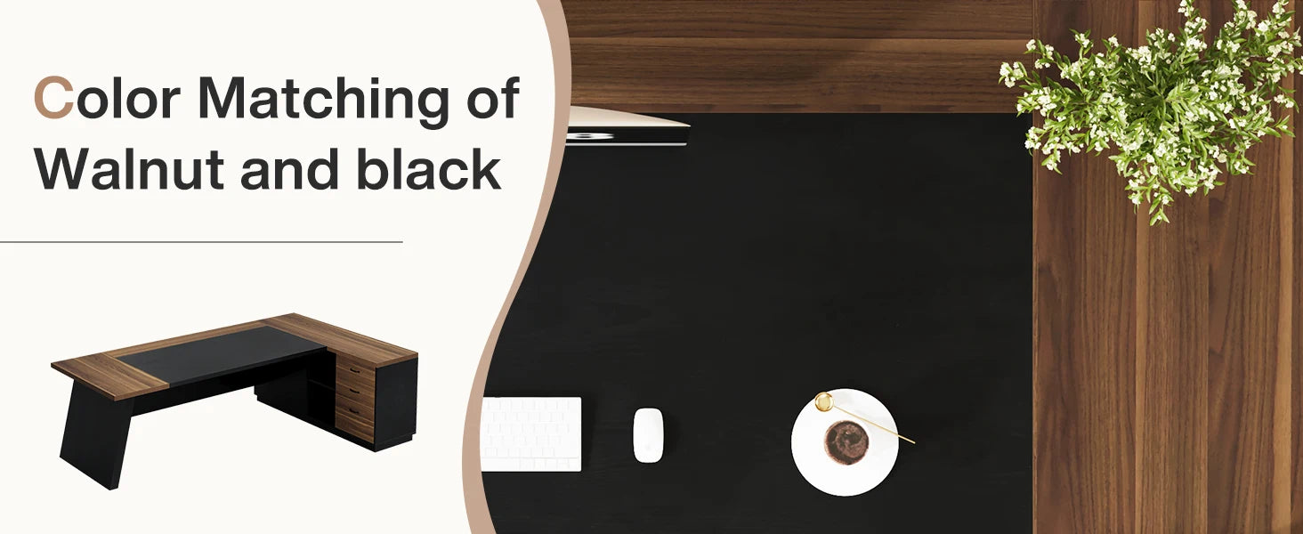 - Elegant Finishes: Crafted with exquisite light walnut and black finishes, this desk is resistant to scratches, bumps, and spills.