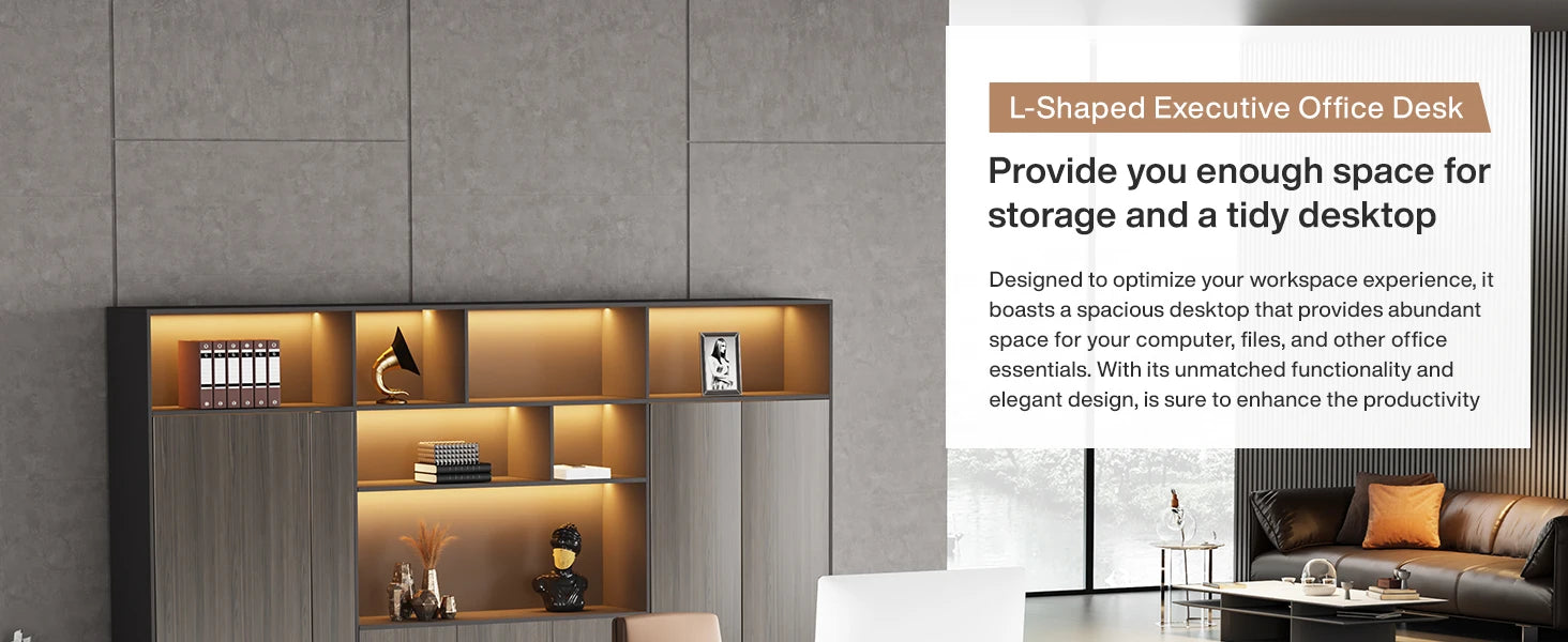 Upgrade your office with the Ljustra L-Shaped Executive Desk and enjoy a blend of style, functionality, and comfort!