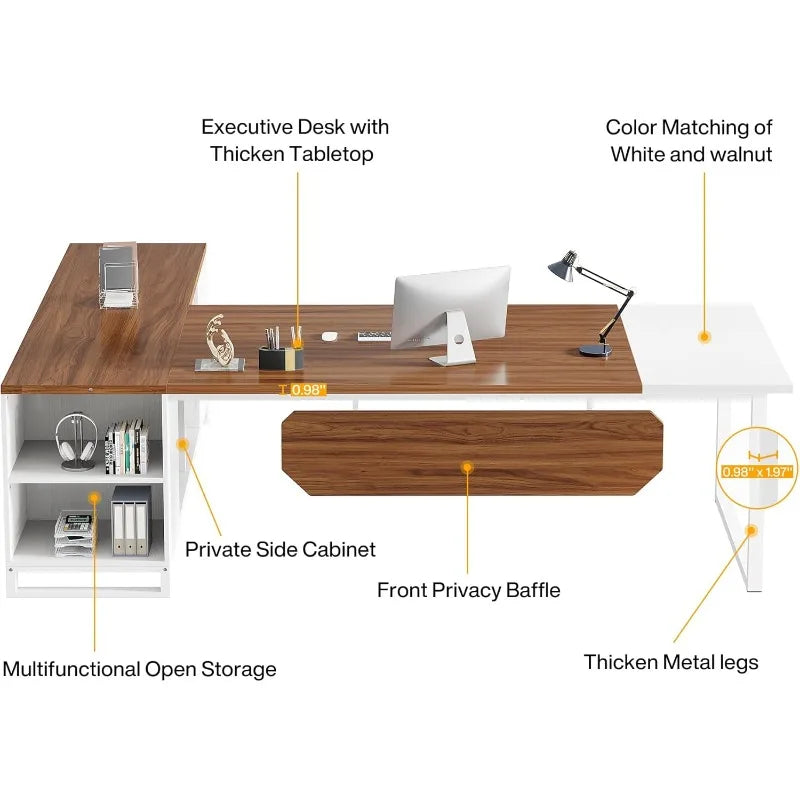 Transform your workspace with the 70.8" L-Shaped Executive Desk and 55" File Cabinet. This large home office computer desk is designed to provide ample space and stylish organization for all your essentials.