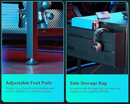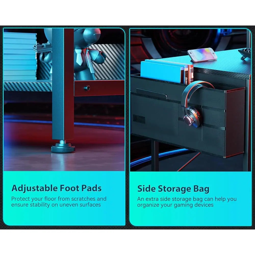 - Carbon Fiber Texture: The desk features a modern carbon fiber surface that is not only stylish but also durable, scratch-resistant, and water-resistant.