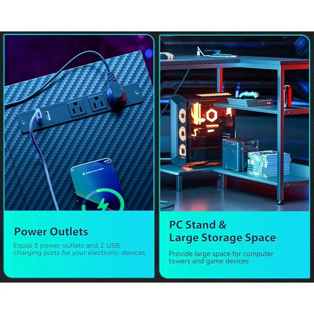 L Shaped Gaming Computer Desk with Power Outlets Corner Desk Small Space
