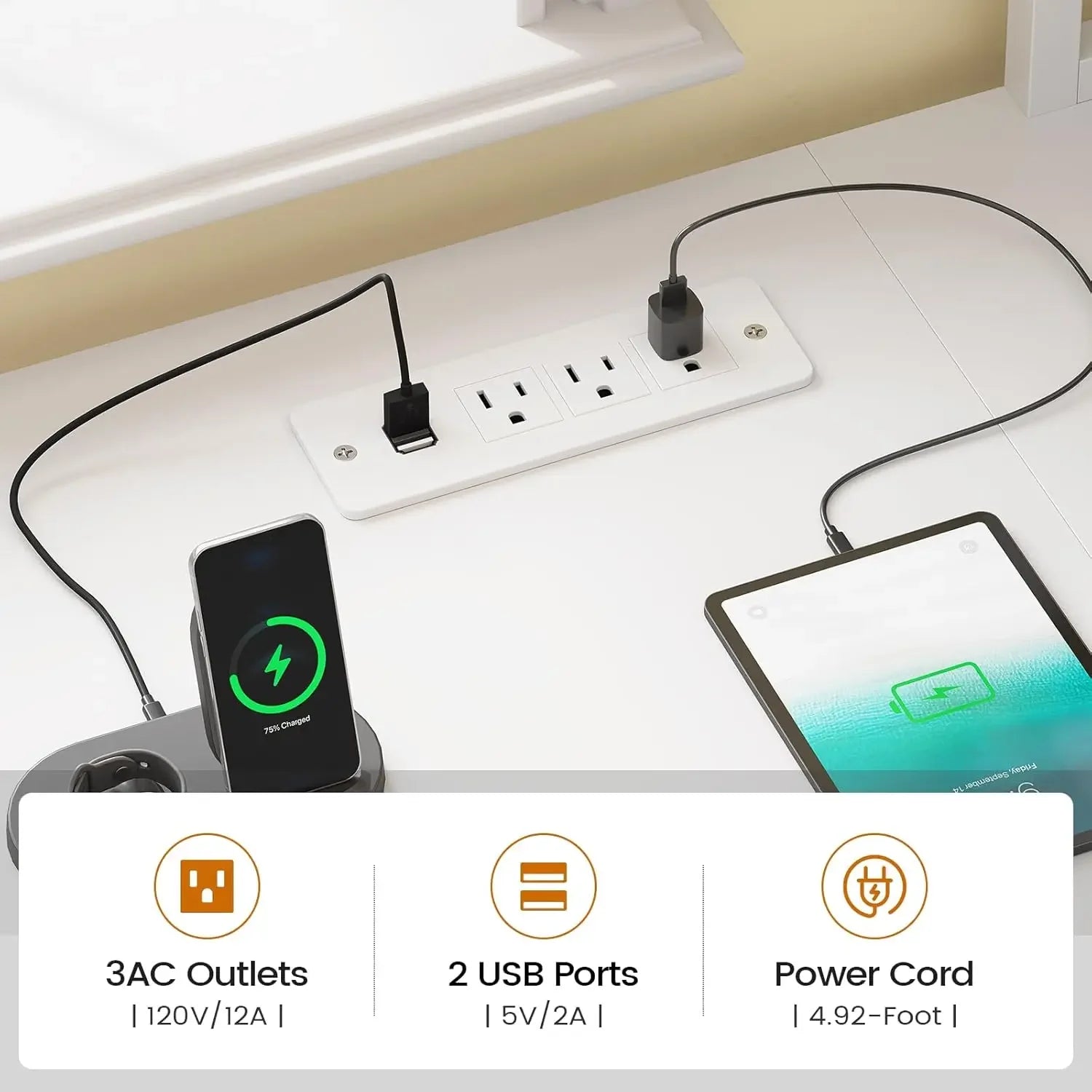 - User-Friendly Power Options: Built-in power strip with 3 outlets and 2 USB ports ensures your devices are always charged and ready.