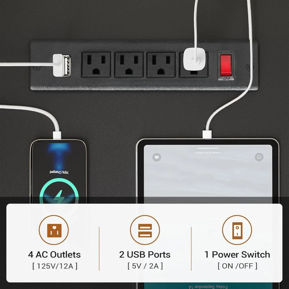 - Charging Port: Includes a 4-outlet and 2 USB ports, powering up to 6 devices simultaneously for your convenience.