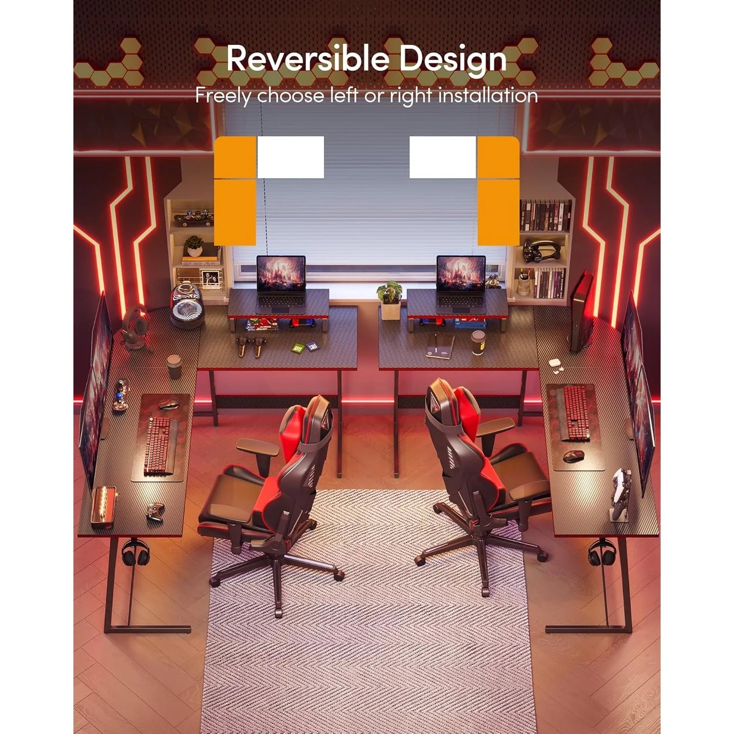L Shaped Gaming Desk Corner Office Desk Carbon Fiber Monitor Stand 47 Inch