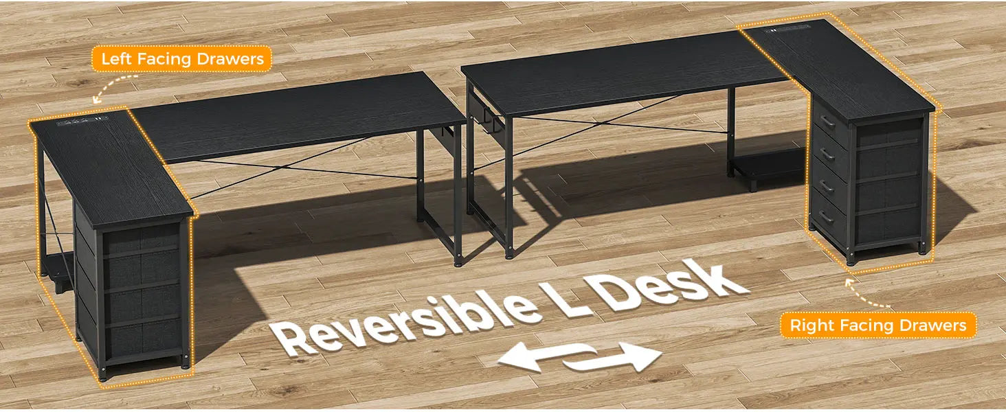 L Shaped Gaming Desk with 4 Drawers USB Charging Reversible Office Desk