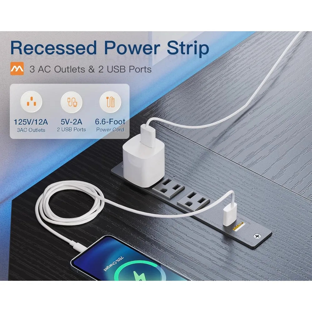 - USB Charging Ports & Power Outlets: Equipped with 3 standard plug outlets and 2 USB ports, stay connected and charged while you work or play.