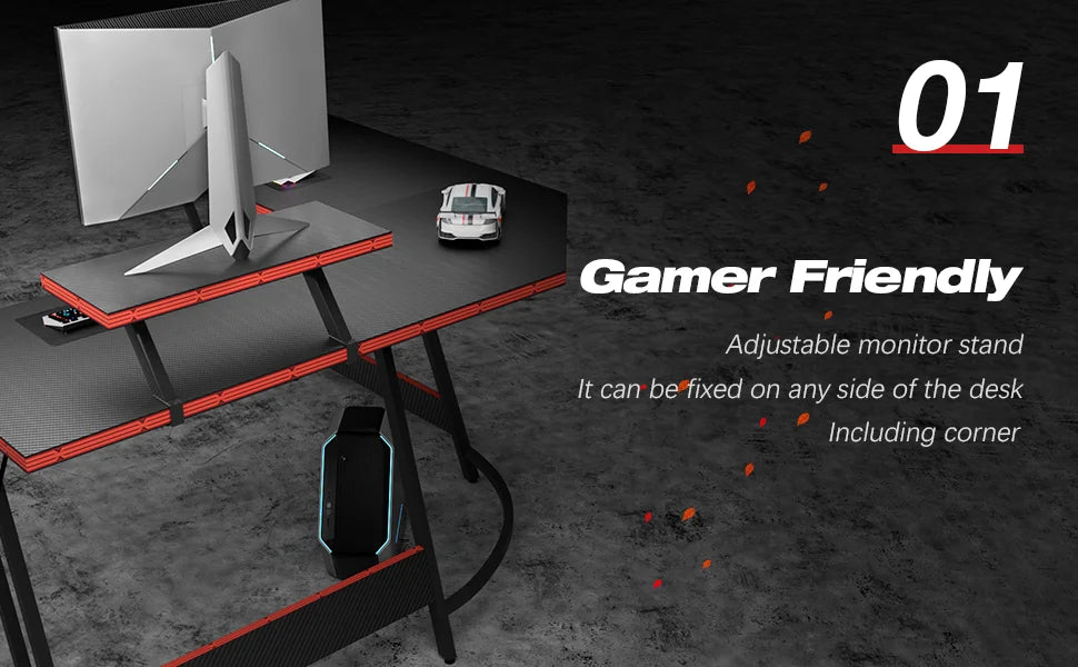 - Spacious Design: The L shape provides ample space for your monitors, gaming peripherals, and writing materials, ensuring you have everything at your fingertips.