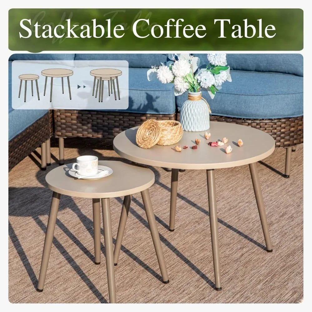 The set includes a large 23.6" coffee table and a smaller 15" side table that can be used separately or stacked to save space. The smooth round tube design adds a touch of elegance to your outdoor decor.