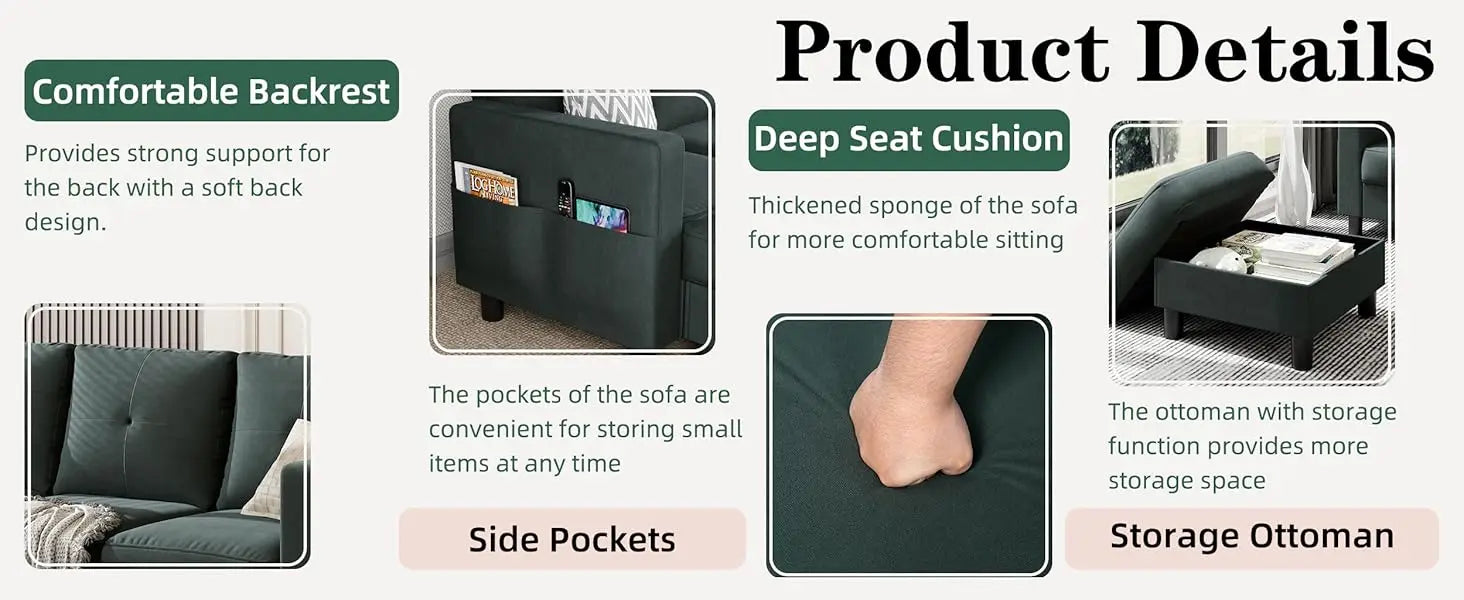 Discover the perfect blend of style and functionality with Ljustra's L Shaped Sectional Sofa. Designed for modern living, this sofa set is ideal for small spaces and comes with a convenient movable ottoman for added versatility.