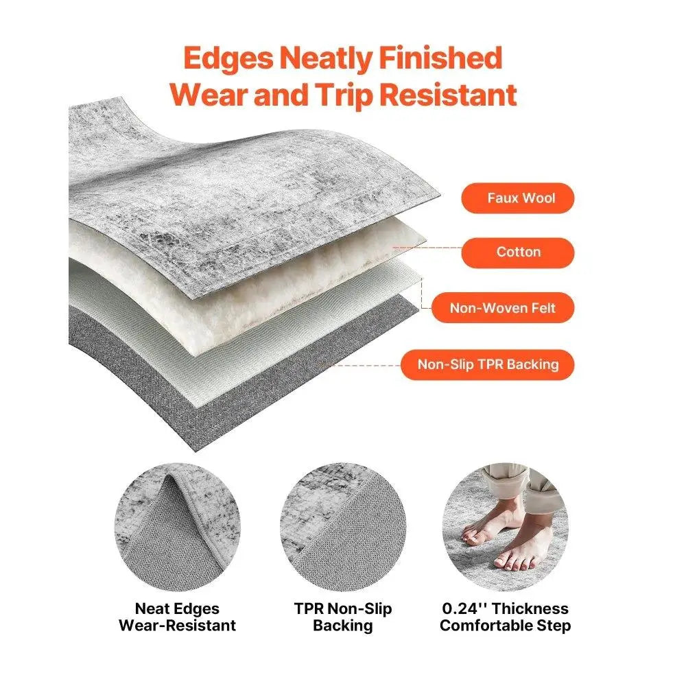 - Machine Washable: Designed with TPR backing and faux-cashmere edging, this rug survives washing machines effortlessly. Just wash, spin, and enjoy!