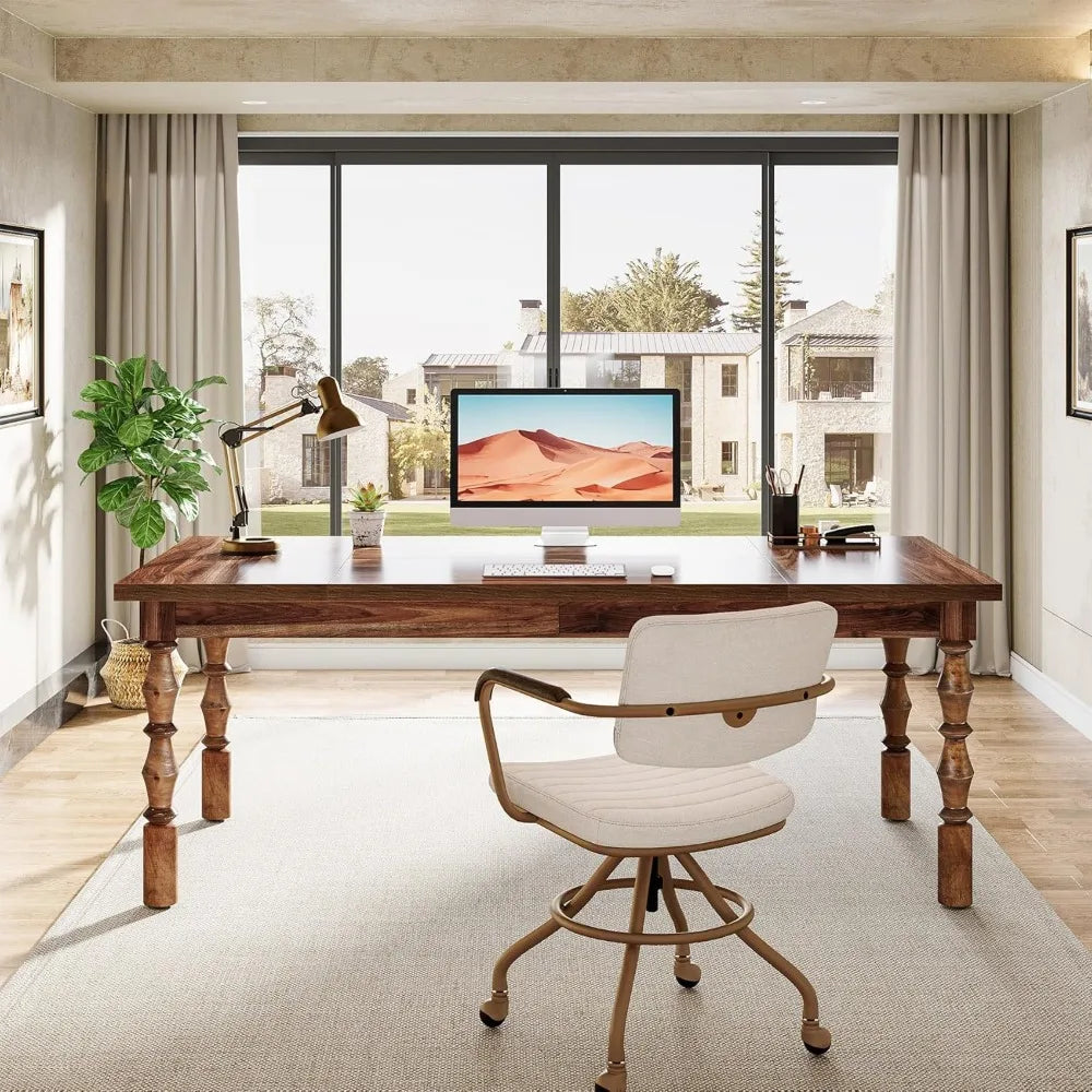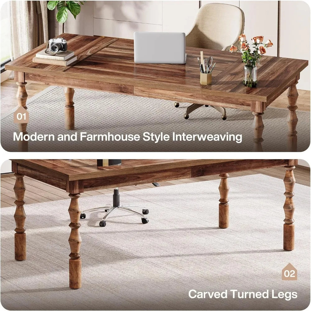 Large Executive Office Desk 62 Inch Farmhouse Modern Writing Table