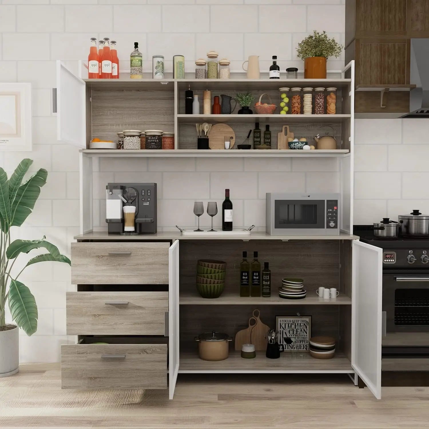 Large Kitchen Hutch Cabinet Storage Cupboard with Microwave Shelf