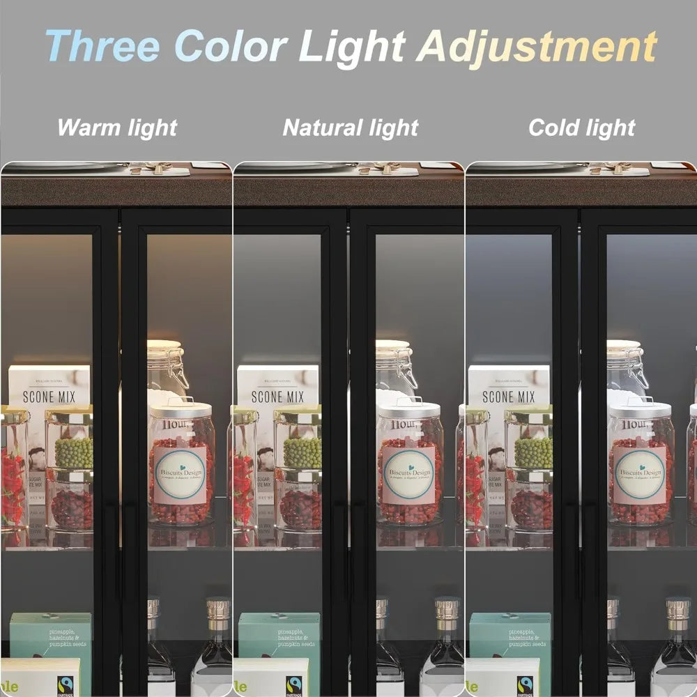- Modern Design with Lighting: The glass doors and elegant 3-color lighting beautifully showcase your items while brightening up your kitchen.