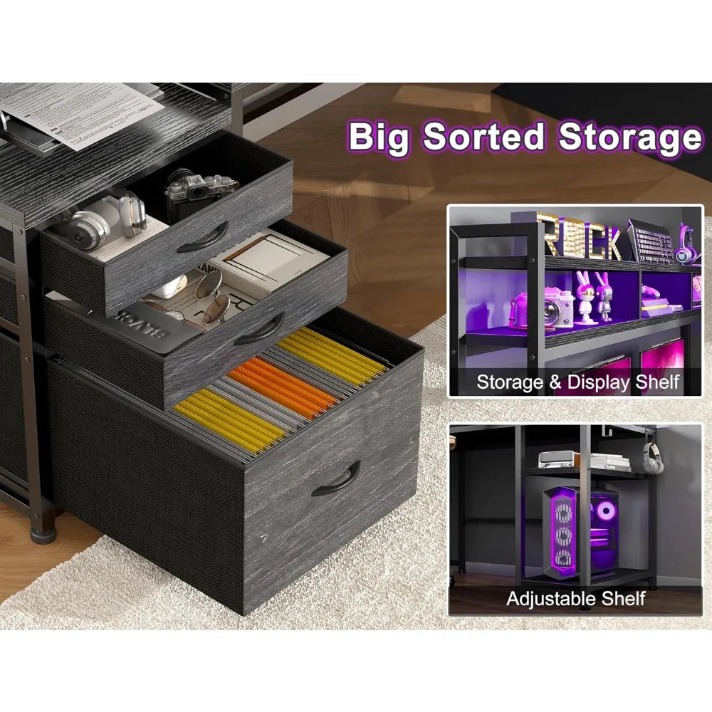 Large L Shaped Gaming Desk with Hutch Drawers Storage LED Light