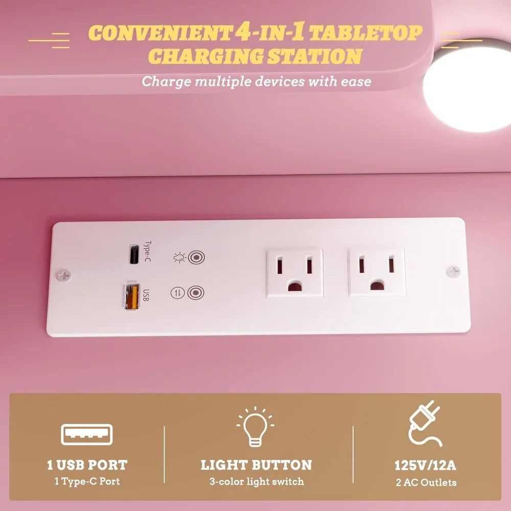 Large Makeup Vanity Desk with Mirror Lights Charging Station and Drawers