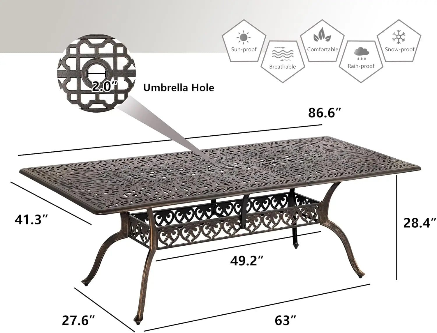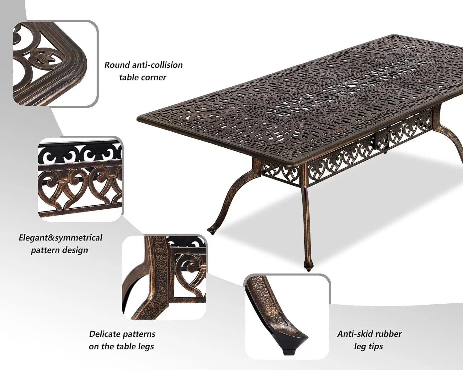 - Durable Construction: Made from UV-resistant and rust-resistant cast aluminum, ensuring long-lasting use and stability.