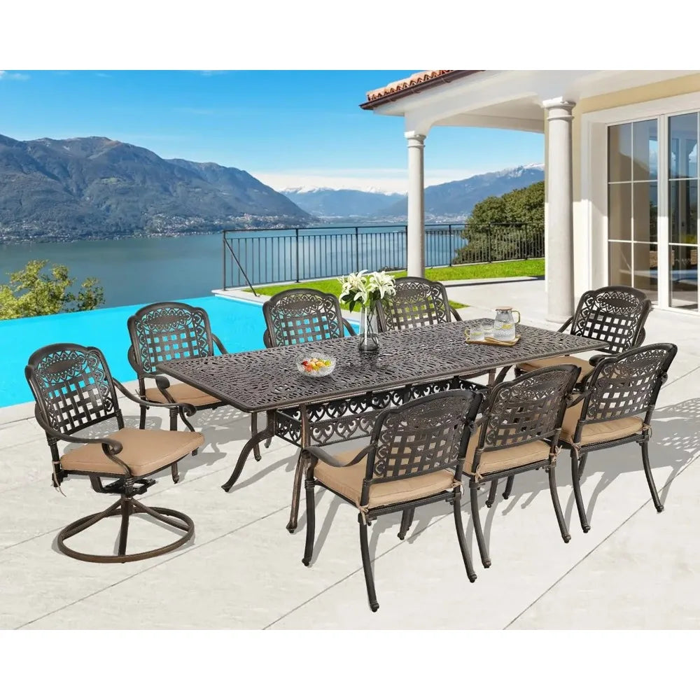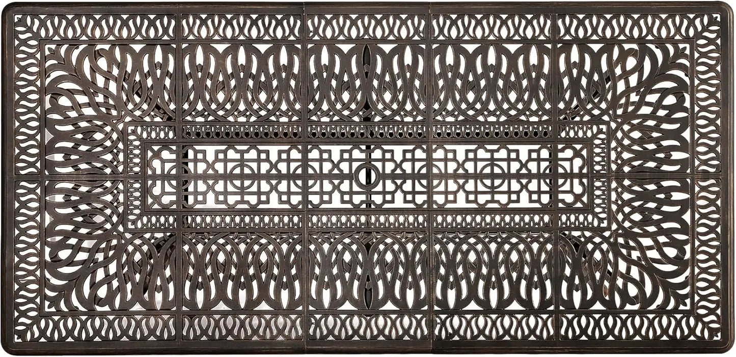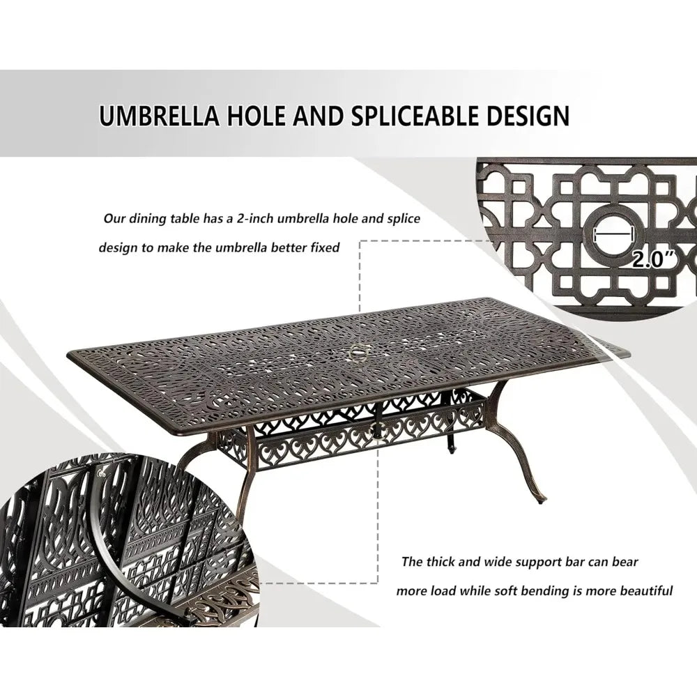 Large Rectangular Outdoor Dining Table with Umbrella Hole Weather-Resistant