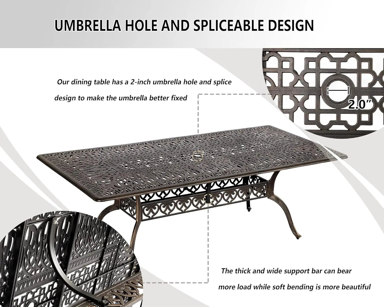 - Convenient Umbrella Hole: Equipped with a 2-inch umbrella hole in the center, providing shade for those sunny days.