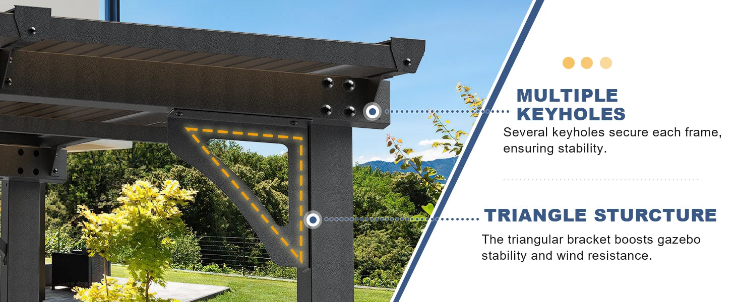 - Extra Solar Lights & Sturdy Frame: Crafted from durable powder-coated aluminum, this gazebo resists fading, rust, and corrosion. Enjoy the added ambiance of solar lights for those magical evenings outdoors.