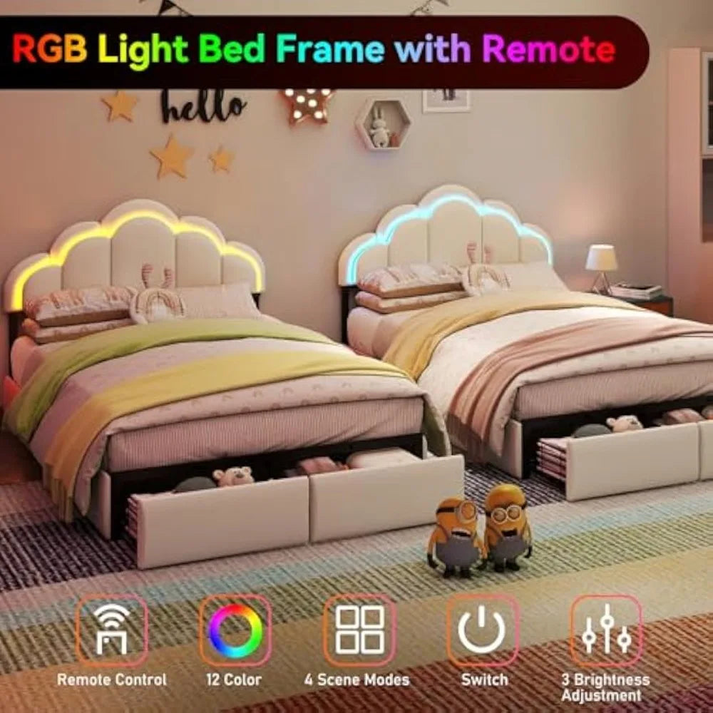 - SMART RGB LIGHTS: Enjoy a customizable ambiance with equipped RGB LED lights in the headboard. Use the remote to set 12 colors, adjust brightness, and choose from 4 scene modes—perfect for mood lighting or a vibrant party atmosphere.