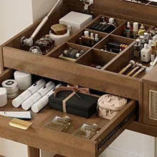 - Spacious Storage: Keep your cosmetics organized with ample drawer space and a cabinet.