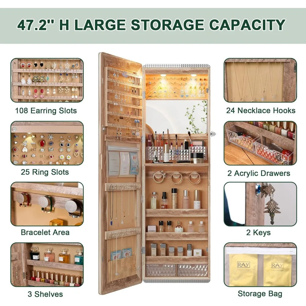- 47.2" Height Large Storage Capacity: Spaciously designed to hold all your cosmetics, jewelry, and accessories, including earrings, rings, necklaces, and skincare products.