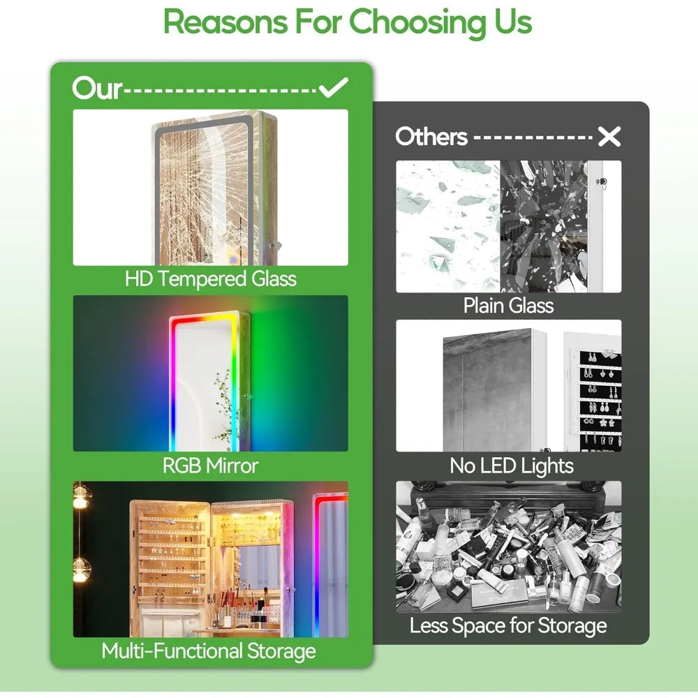 LED Mirror Jewelry Cabinet Wall Mounted Organizer with RGB Lights