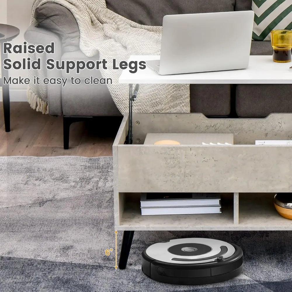 Modern Lift Top Coffee Table with Hidden Compartment and Open Shelves
