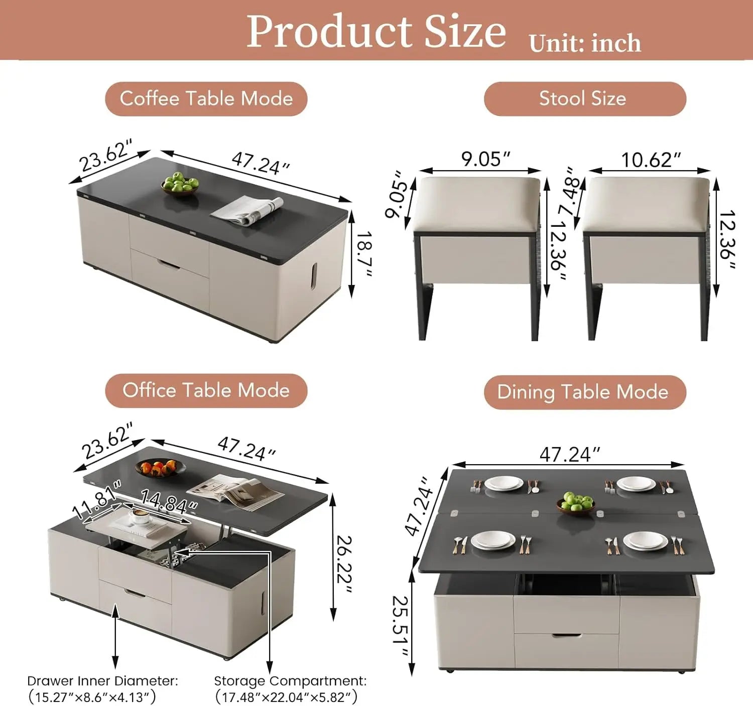- Multi-Functional Design: Effortlessly converts from a coffee table to a dining table suitable for 4-6 people.
