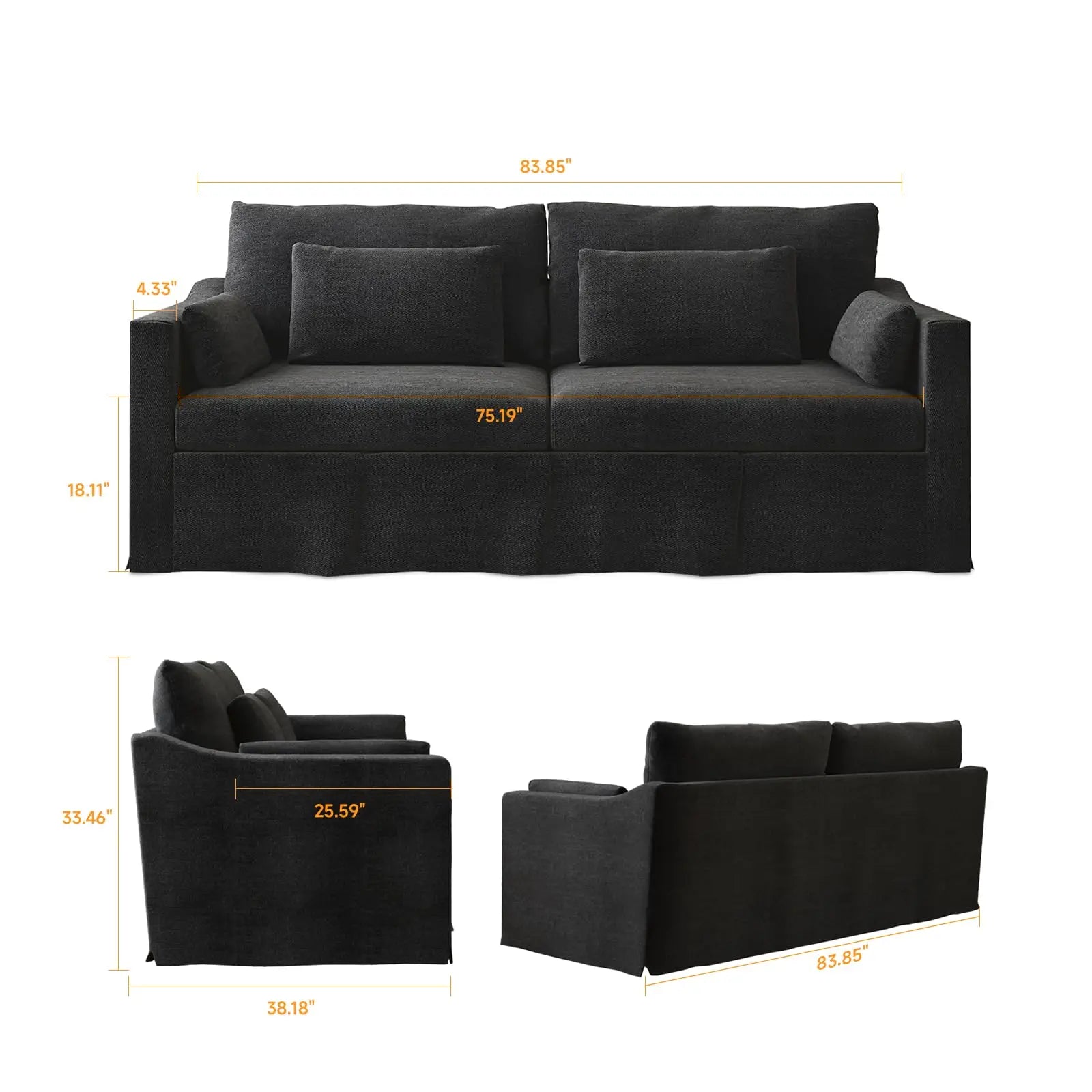 - Dimensions: 38.18"D x 84"W x 33.46"H