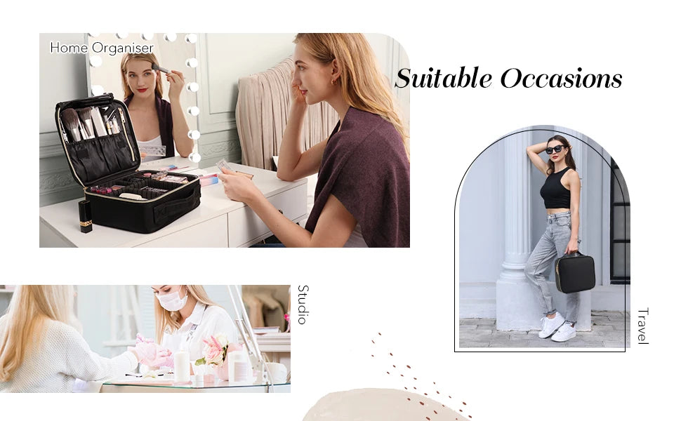 - Customizable Storage: Features adjustable sponge dividers to accommodate various sizes of makeup.
