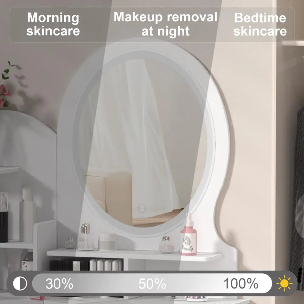 Makeup Desk with Mirror Large Vanity Table Storage 4 Drawers Light