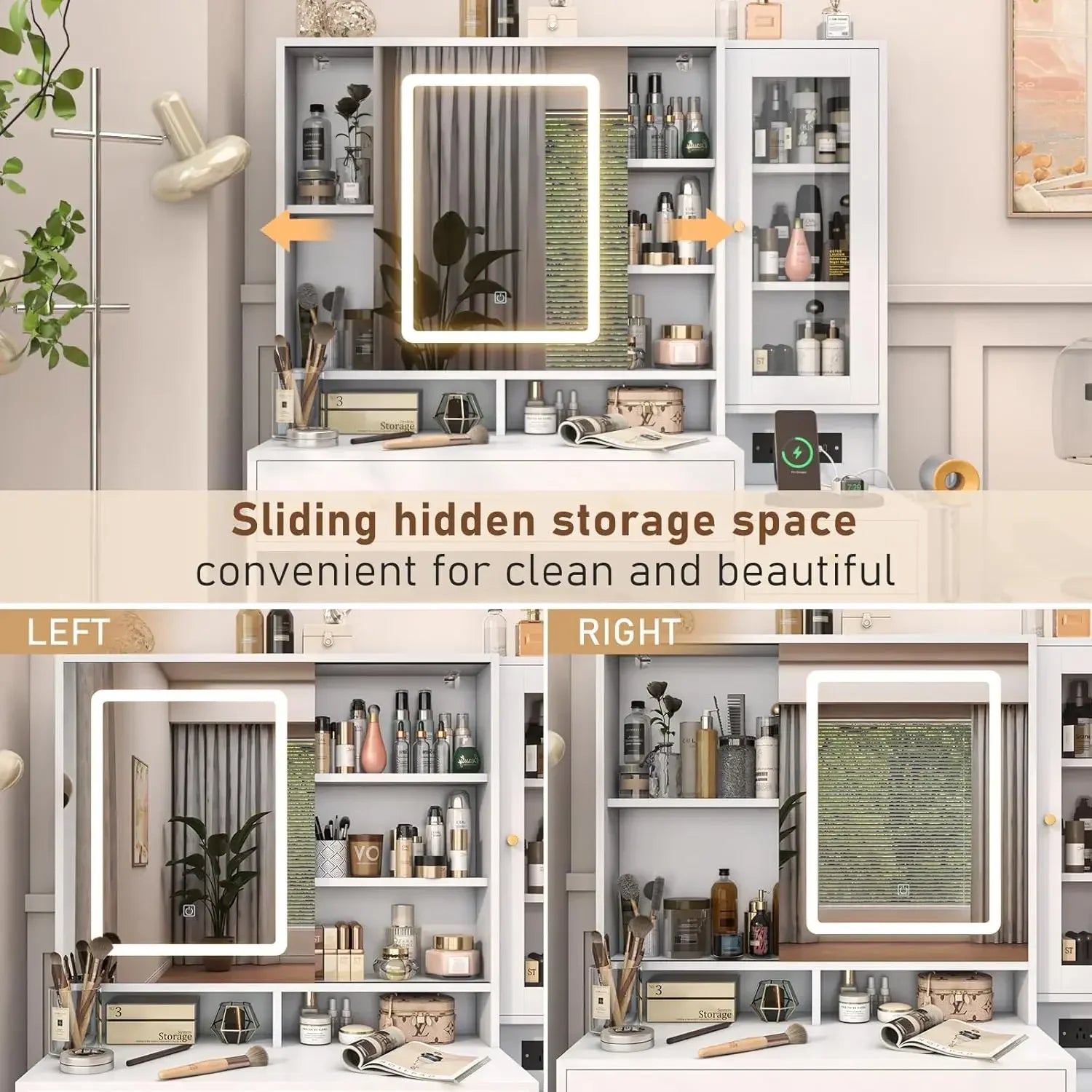 Makeup Mirror Desk with Charging Station and Storage for Girls Women