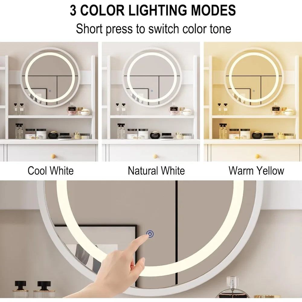 - Illuminating Mirror: Enjoy a perfectly lit makeup application with the LED mirror that offers 3 lighting modes—white, yellow, and warm gold. Just touch the switch to switch between settings!