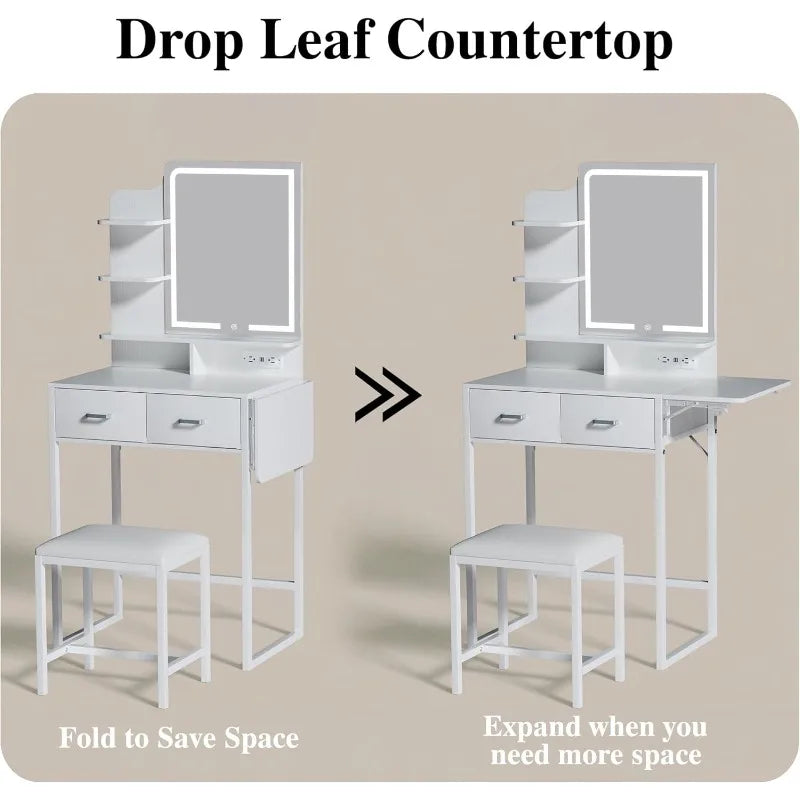 - Extra Space: With a foldable side panel that can be installed on either side, this vanity provides ample space for all your makeup essentials.