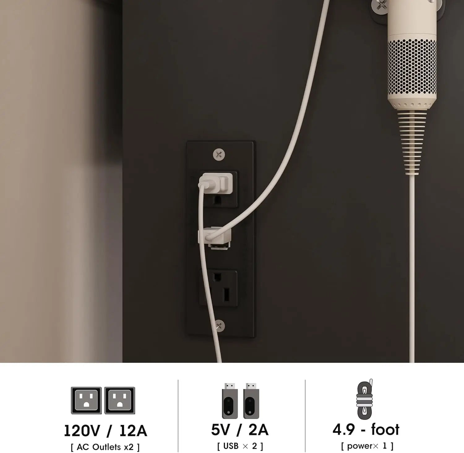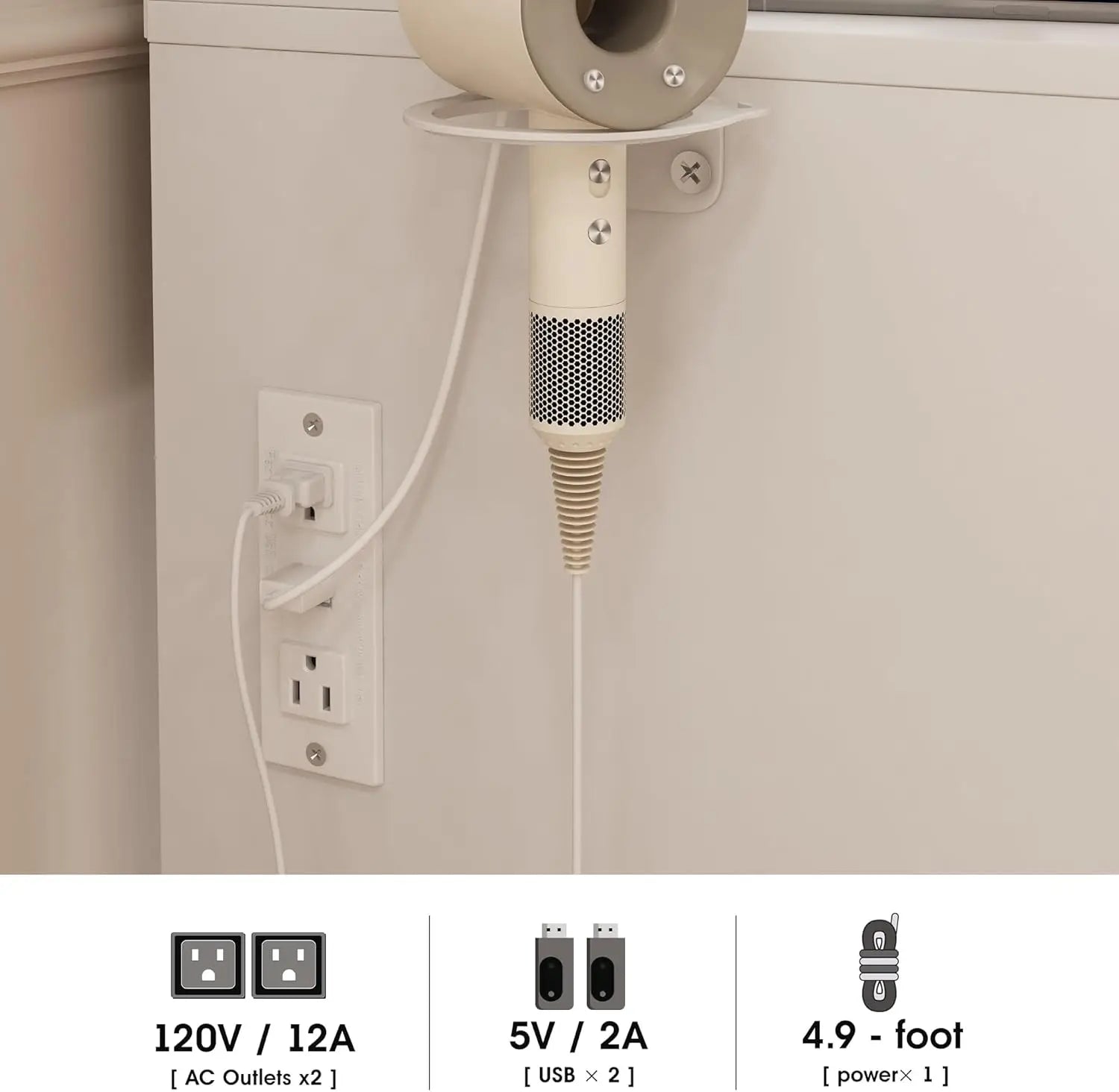 - Built-in Charging Station: Stay connected while you glam up! This vanity includes a convenient hair dryer rack, 2 standard plug sockets, and 2 USB ports for charging your devices.