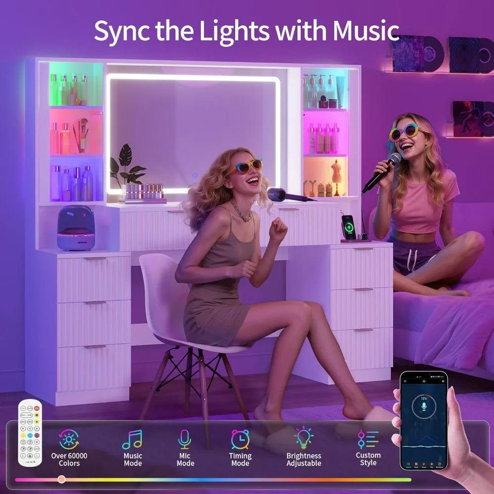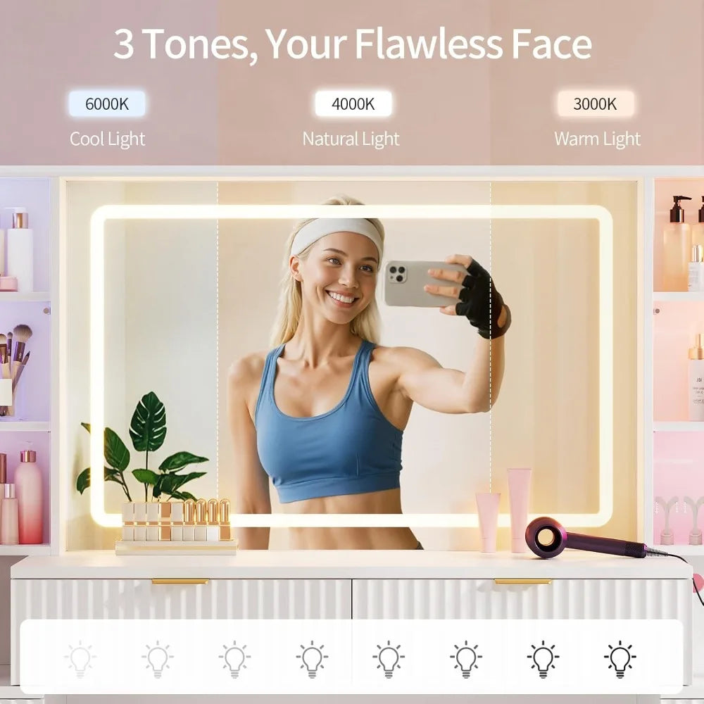 - Dynamic Lighting System: The HD mirror features 3 color temperatures and adjustable brightness, along with sound-sync LED lights that pulse to your music.