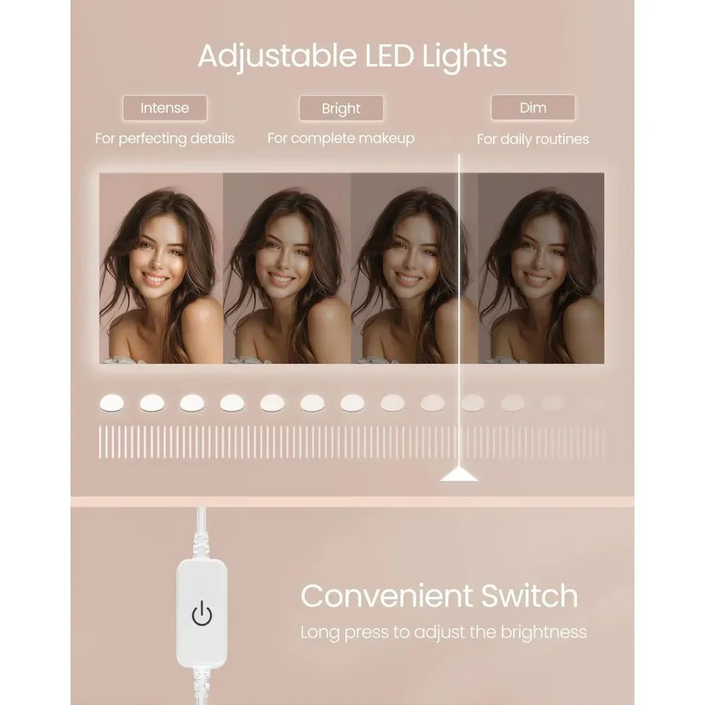 - Illuminated Vanity Mirror: The vanity mirror, surrounded by 9 adjustable light bulbs, lets you customize brightness levels for flawless makeup application every time.
