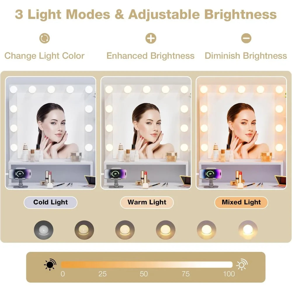- Lighted Mirror: Equipped with 11 adjustable light bulbs and three lighting modes (warm, natural, cool) to provide the perfect illumination for flawless makeup application.