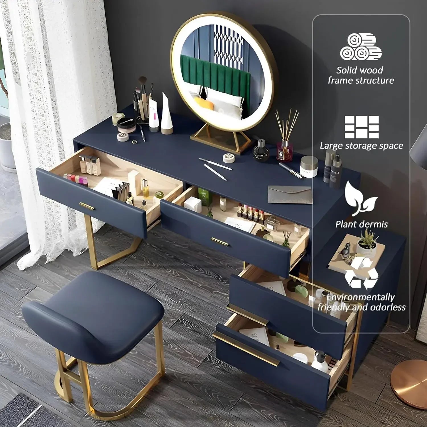Discover the perfect blend of style and functionality with the Ljustra Makeup Vanity Set. Designed for the modern woman, this vanity set features a stunning mirror with adjustable lighting, a minimalist aesthetic, and ample storage to keep your beauty essentials organized.