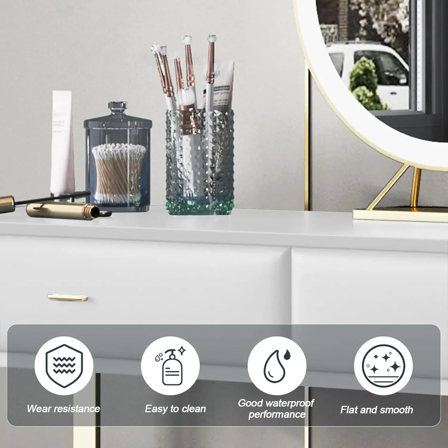 Makeup Vanity Set with Mirror and Lights Dresser Table 4 Drawer Stool