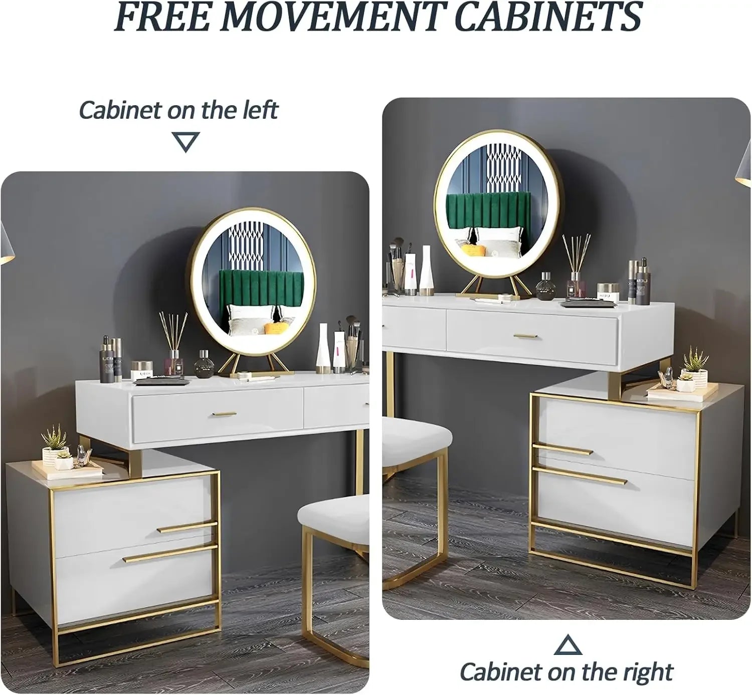 - Flexible and Expandable Design: Customize your dressing table layout with a side cabinet that can be adjusted for different spaces.