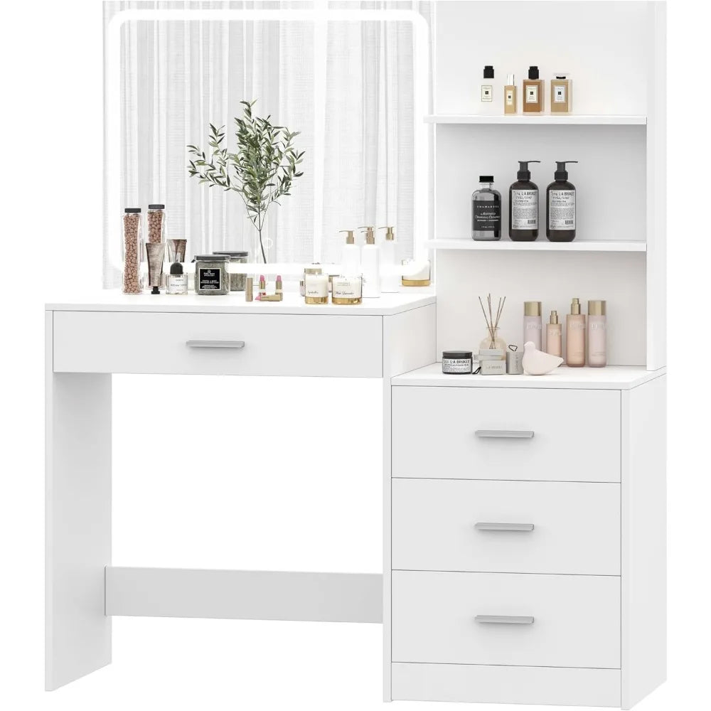 - Smart Storage: Four spacious drawers and a side storage shelf keep your beauty products organized and easily accessible.