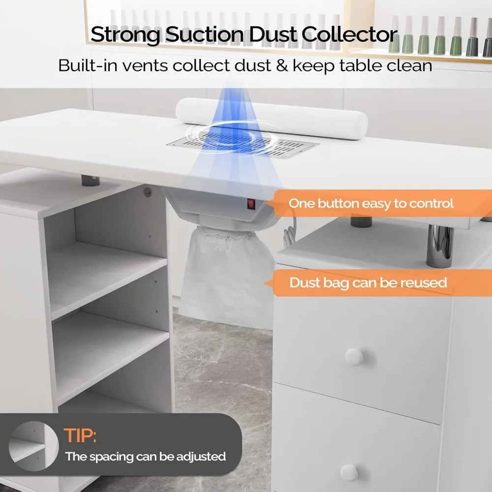 Manicure Table Nail Desk with Electric Downdraft Vent Lockable Wheels