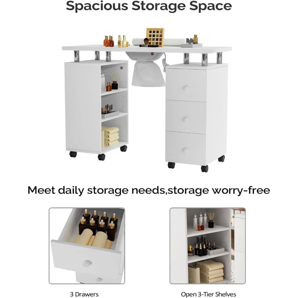 - Ample Storage Space: Features 3 spacious drawers and multiple open compartments for all your manicure tools and accessories.
