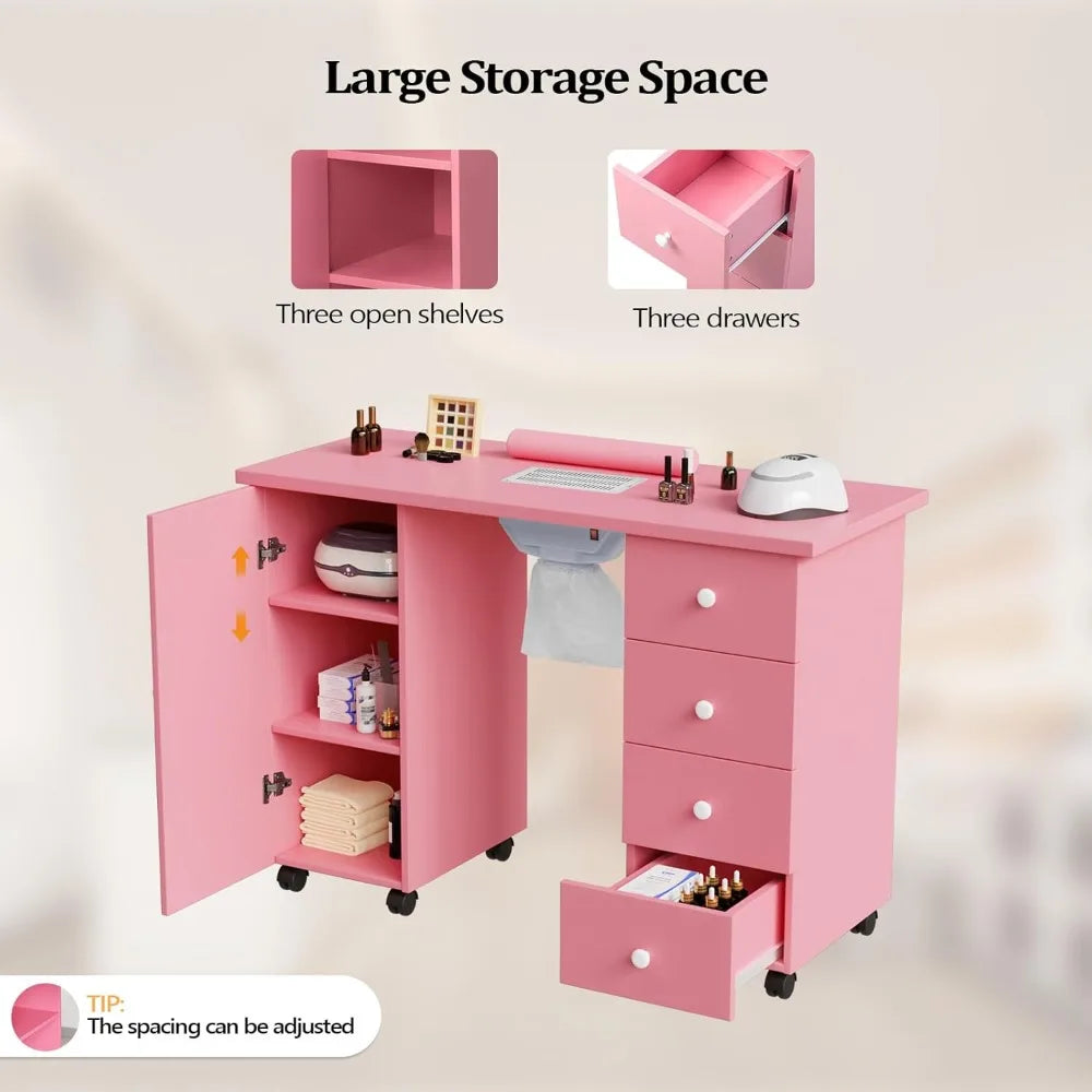 Manicure Table Nail Desk with Electric Downdraft Vent Lockable Wheels